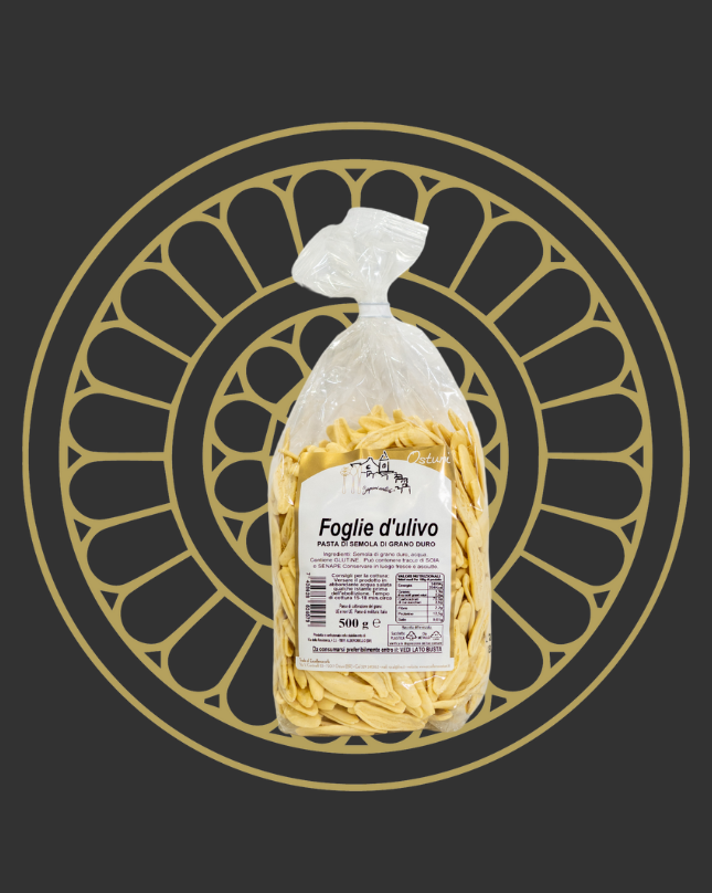 Le foglie d’ulivo sono una pasta di semola di grano duro contenenti semola di grano duro, acqua, glutine e può contenere tracce di soia. Si consiglia di conservare in luogo asciutto e fresco. Inoltre, il tempo di cottura è di 15 minuti.