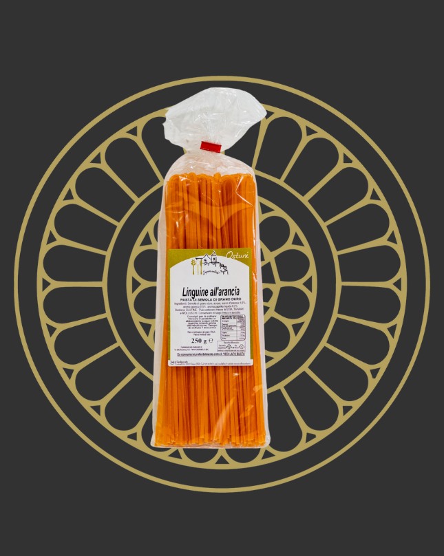 Le linguine all’arancia sono una pasta di semola di grano duro contenenti semola di grano duro, acqua, succo d’arancia 4,6%, aroma d’arancia 0,5%, aroma paprika liquida 0,2%, glutine e può contenere tracce di soia. Si consiglia di conservare in luogo asciutto e fresco. Inoltre, il tempo di cottura è di 7 minuti.