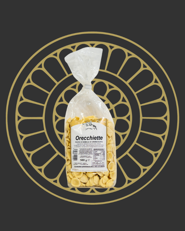 Le orecchiette sono una pasta di semola di grano duro contenenti semola di grano duro, acqua, glutine e può contenere tracce di soia. Si consiglia di conservare in luogo asciutto e fresco. Inoltre, il tempo di cottura è di 15 minuti.