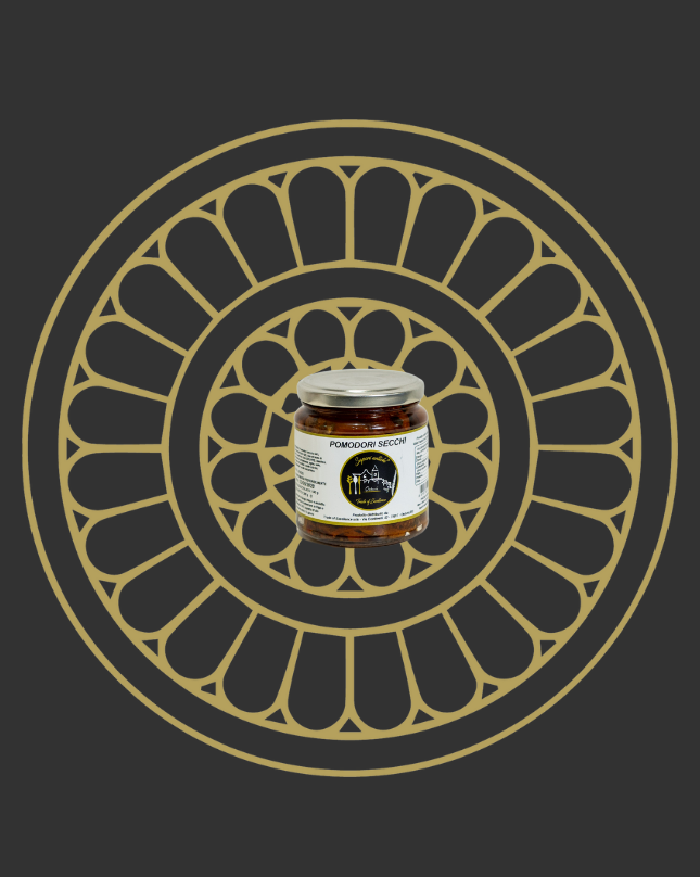 I pomodori secchi sono composti da pomodori secchi 64% di origine Extra europei, olio di semi di girasole, aceto di vino, basilico, peperoncino, prezzemolo, aglio, sale e correttore di acidità.